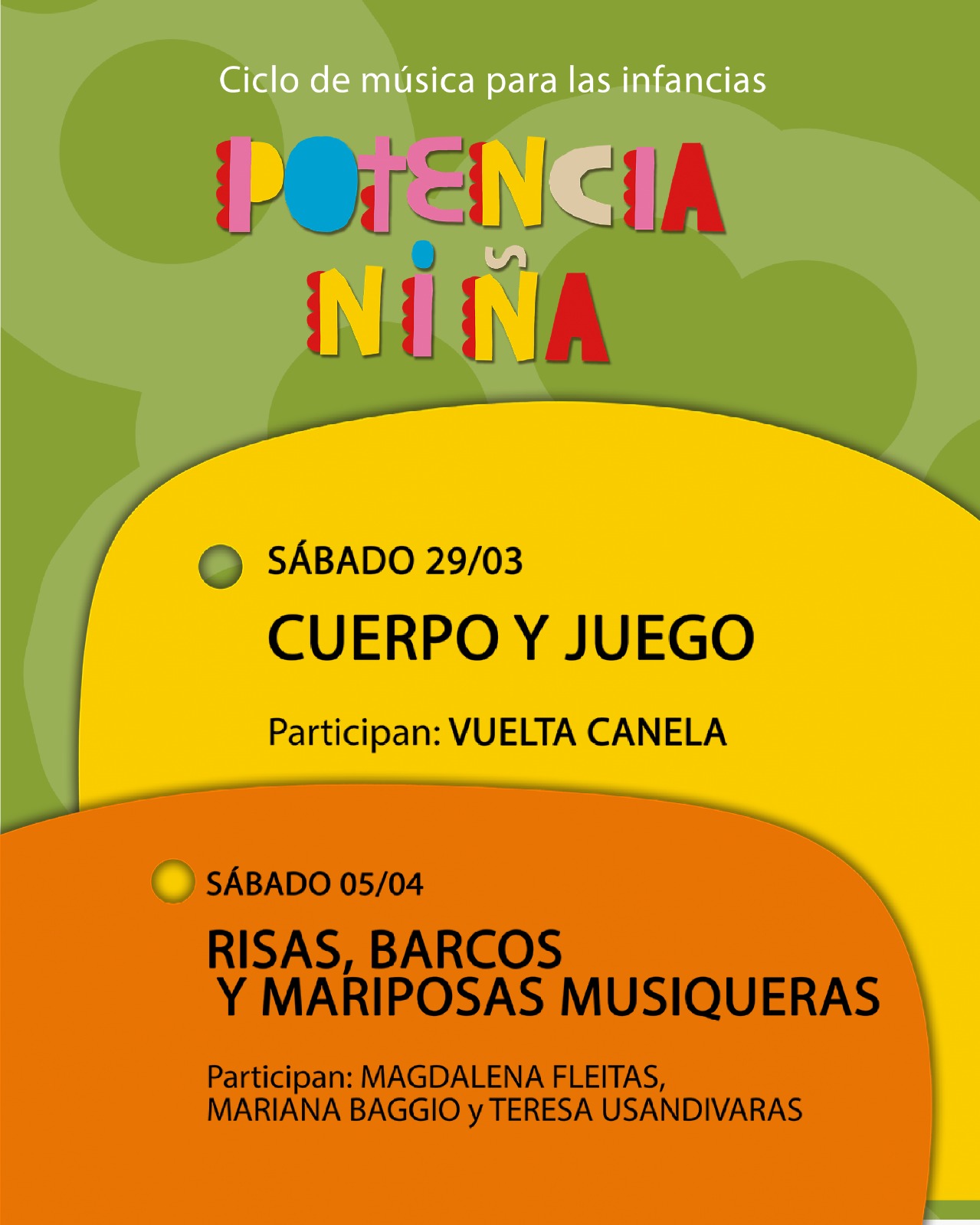 CICLO DE MÚSICA Y ACCIÓN POÉTICA + DEBATE FORO POTENCIA NIÑA. Ciclo de música para las infancias. Un ciclo de música que narra la historia de las niñeces, la cual se irá tejiendo entre canciones que funcionan de hilo conductor de la narrativa.